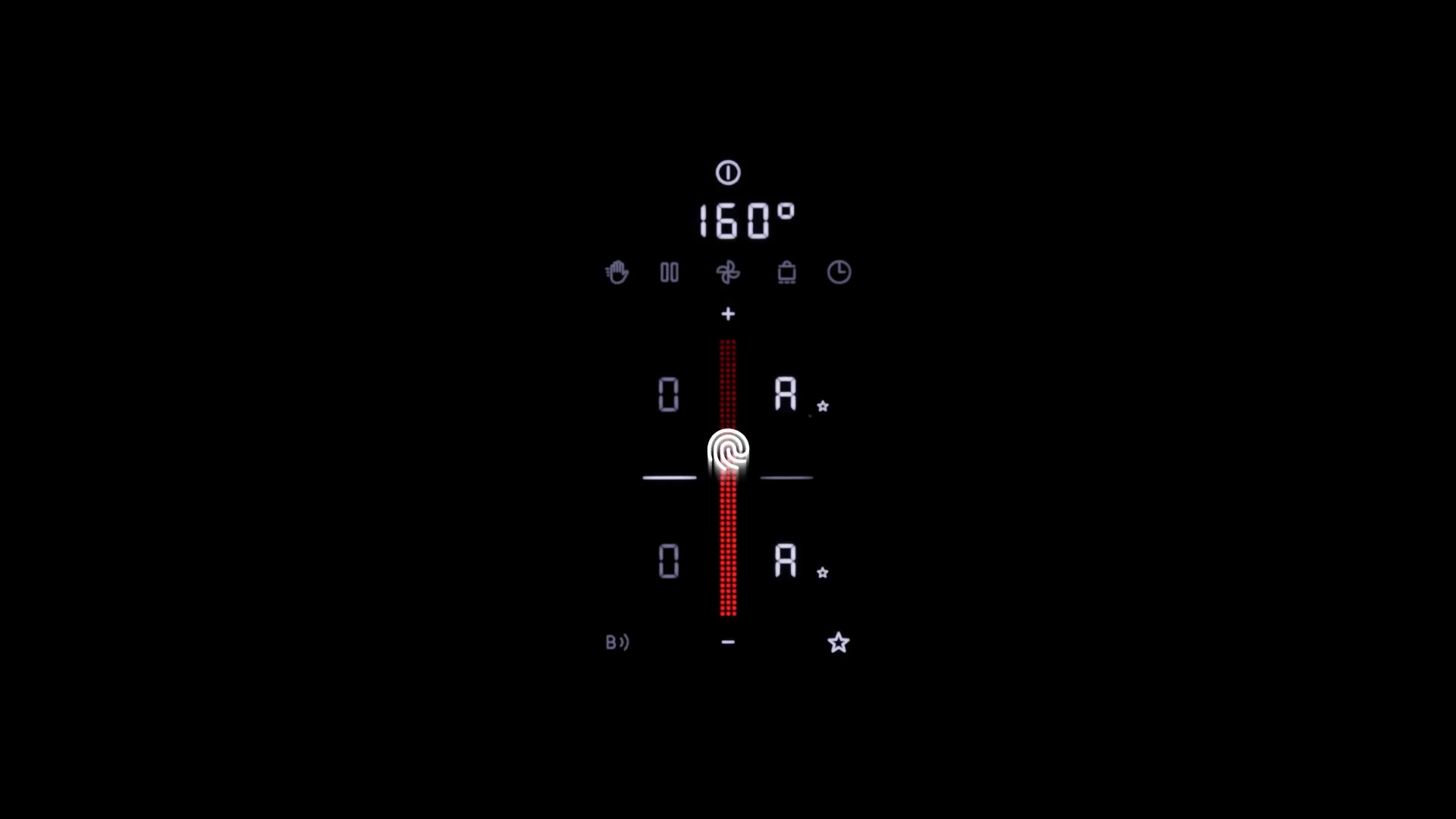 Featuring a high-gloss glass ceramic surface and a recirculation system with an integrated odour filter. It combines a compact induction cooktop with an integrated extractor in one unit, with induction zones on the left and oversized surface induction zones on the right.