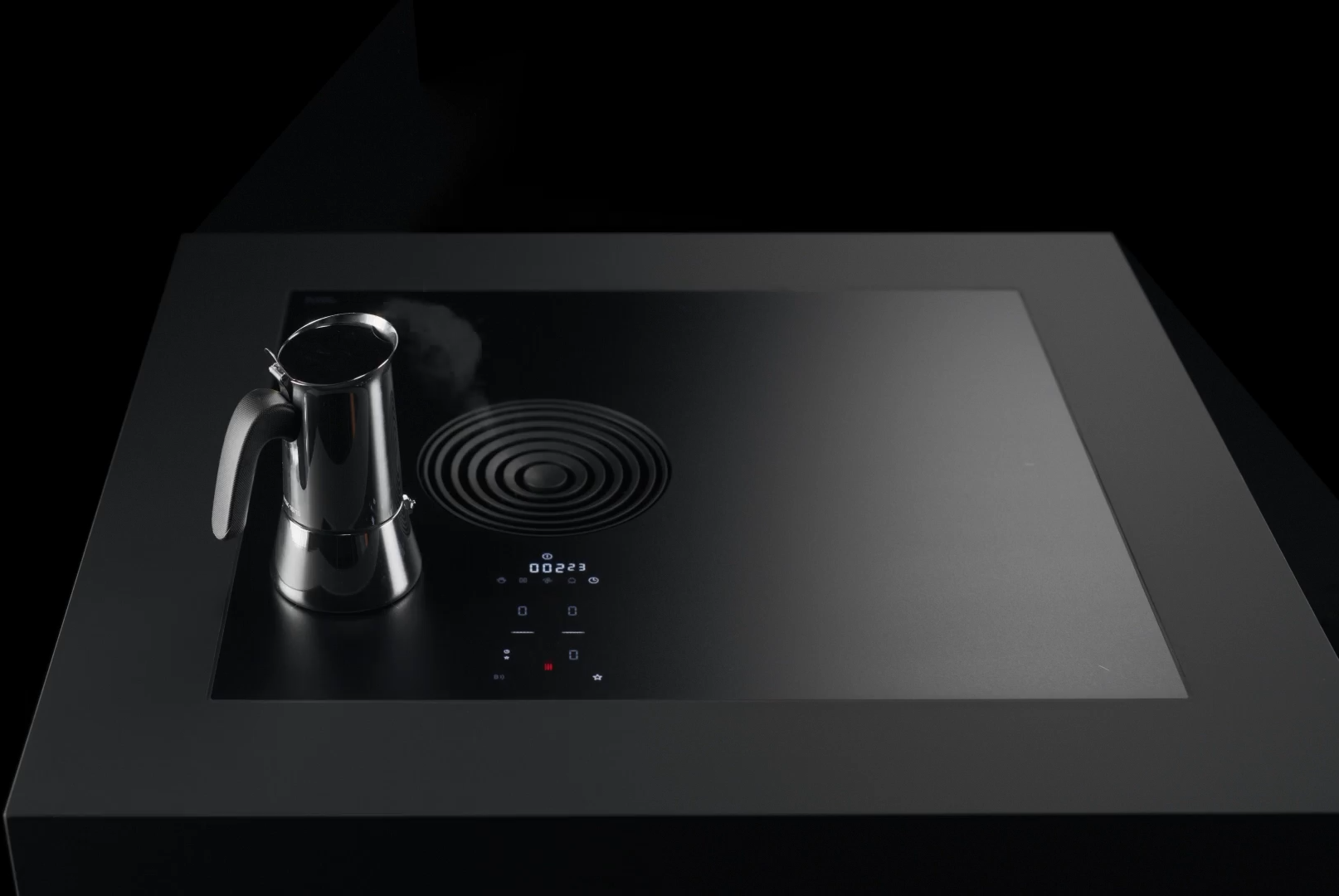 The PURSA2R shares the same technical specifications and features as the PURSA2 but is distinguished by its matt “Rough” glass ceramic surface, offering a tactile, contemporary aesthetic. It also combines induction cooking zones with an integrated extractor and provides all the same smart functionality, including BORA Assist, automatic heat-up, child lock, pause function, and app connectivity.